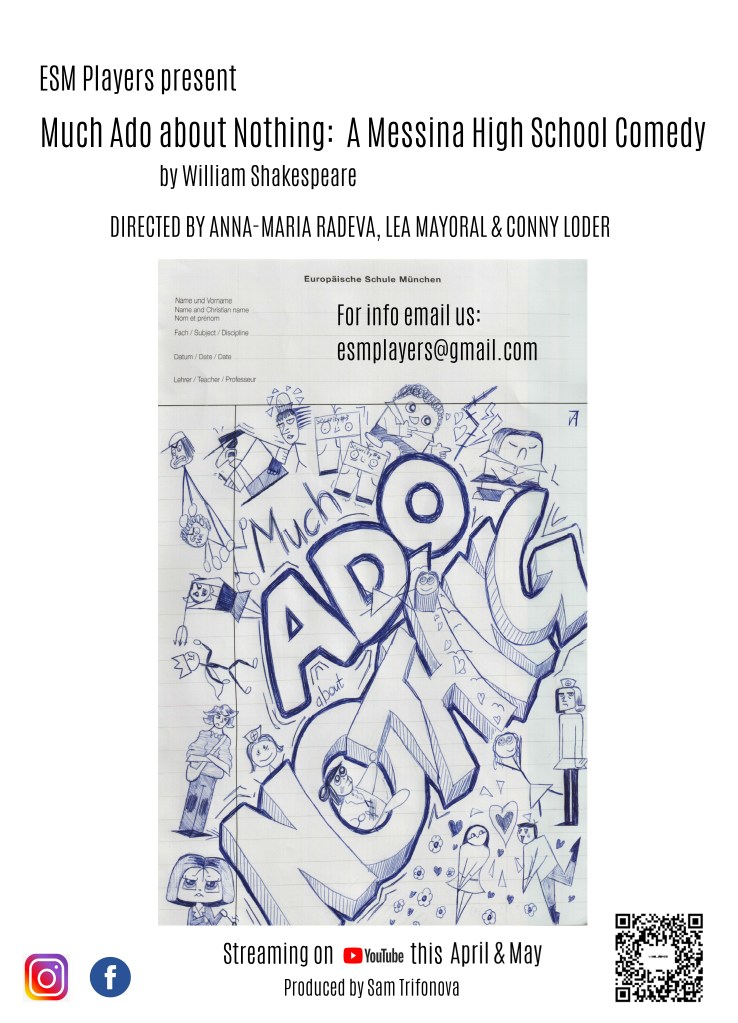 Due to the pandamic, we weren’t yet able to go back to live theatre, so we produced a hybrid project: Much Ado About Nothing, a Messina High School Comedy. You can watch it here on You Tube for free.